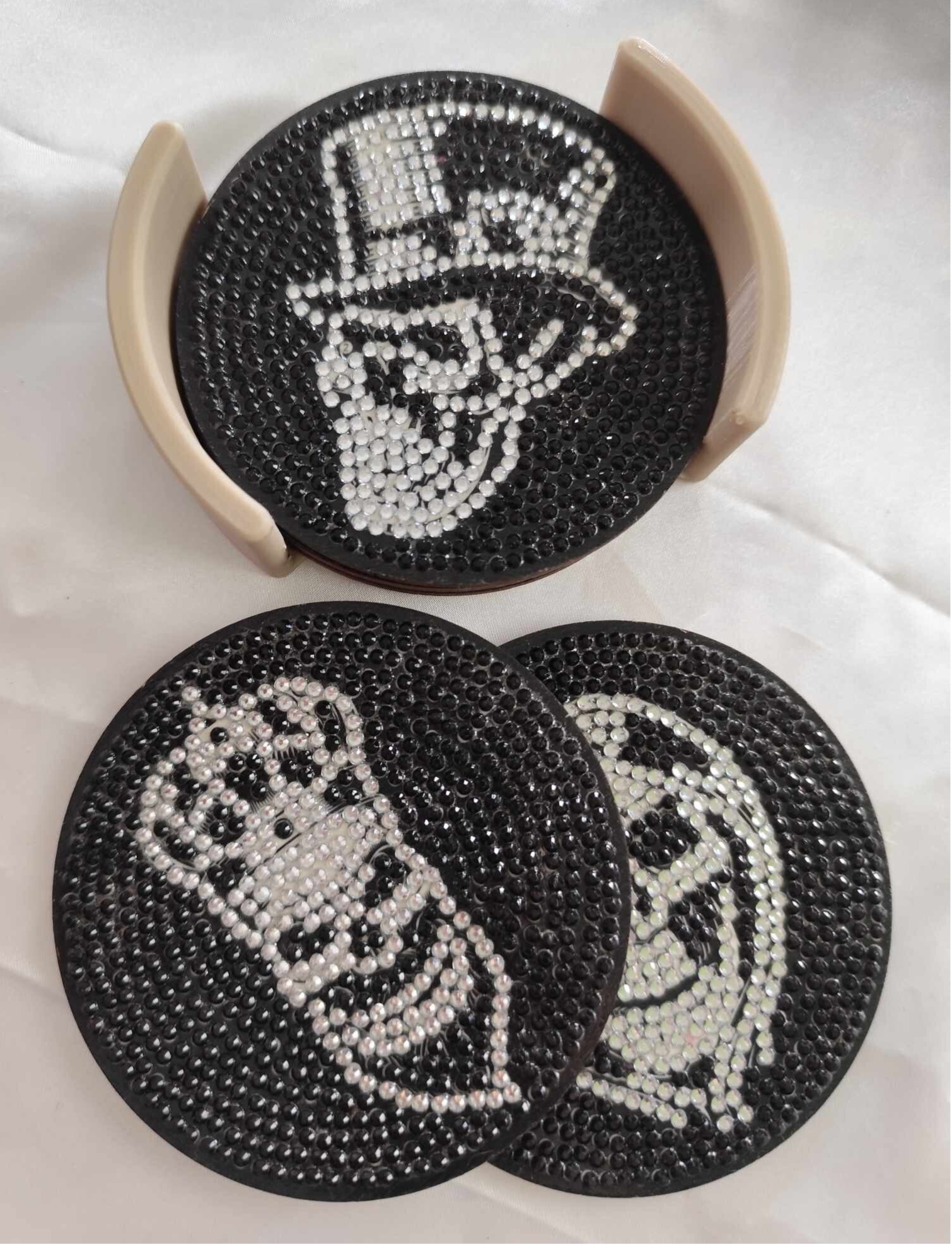 Untersetzer Set hergestellt mit Diamond Painting. Das Set besteht aus 5 Untersetzern inklusive Halterung.