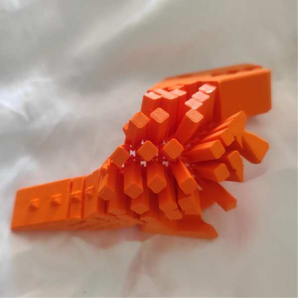 Ein cooler Dino in Orange als Netz Fidget zum entspannen. Es sieht nicht nur sehr Spannend aus aber fühlt sich auch angenehm an beim bewegen und damit spielen.
