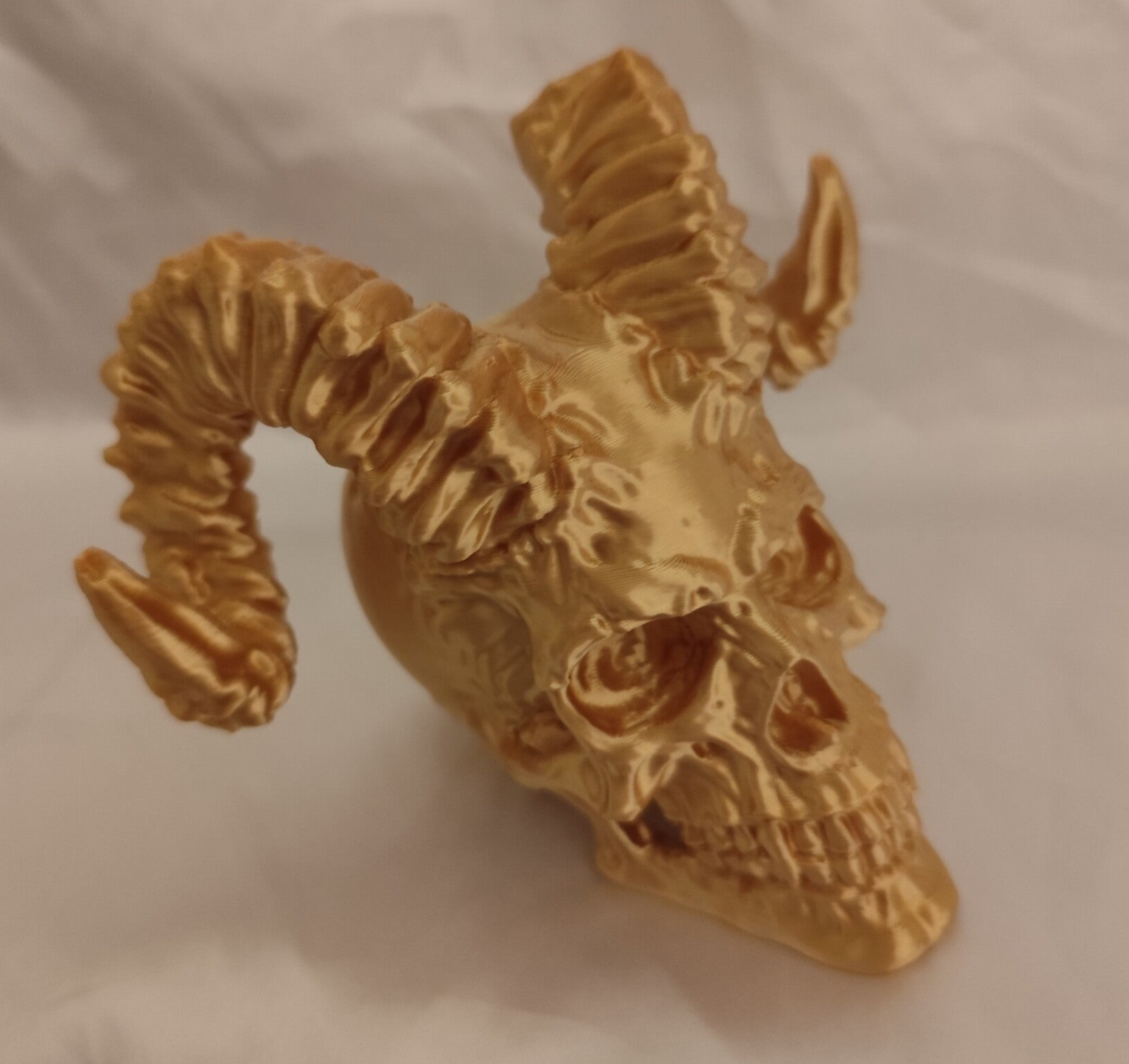 Ein gehörnter Totenkopf in einem tollen Gold. Dieses Dekostück ist der Hingucker.